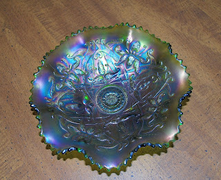 This year we got these wonderful dishes that belonged to, like, her grandmother and therefore are really old. They're made out of carnival glass.